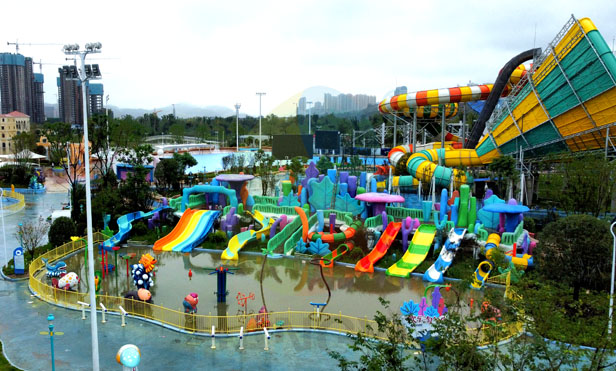 manfu water world, located in manfu new area, nanbu county, nanchong city, sichuan province, is the first phase of the riverside amusement park project of mantou cultural tourism city, covering an area of 65000 square meters. including 5341# large ocean themed water village, loudspeaker slide, bowl slide, children's combination slide and other equipment.
