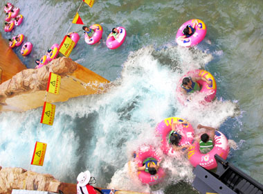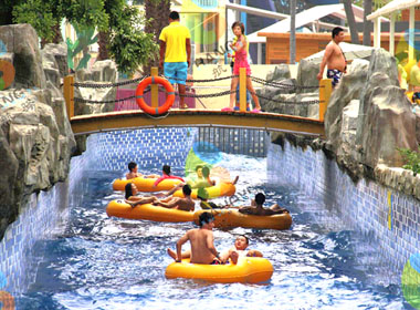 一种环形状河道或可在中间加入岛屿,长度从100到1000米不等,感受悠闲、惬意的漂流探险。