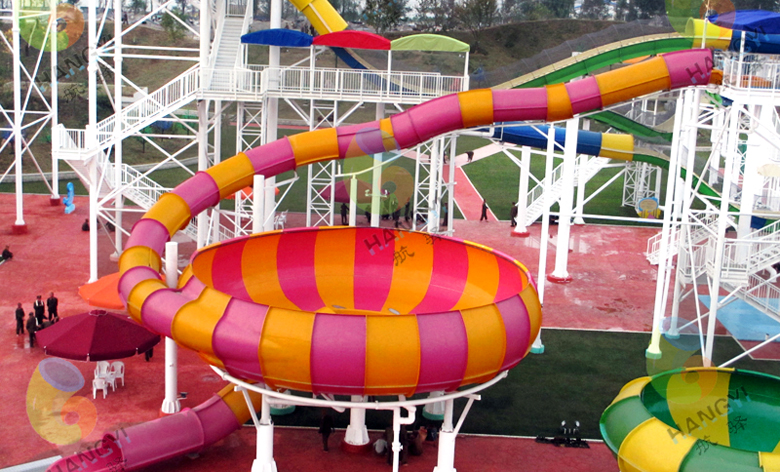 游客在高空先经过曲折的封闭管道,进入巨大的碗体内,在离心力和水的润滑作用下,游客会在池子里高速回旋,最后被吸入碗底滑道,然后落入水池,游客会享受难忘的滑行体验,尖叫声将伴随滑行的始终。