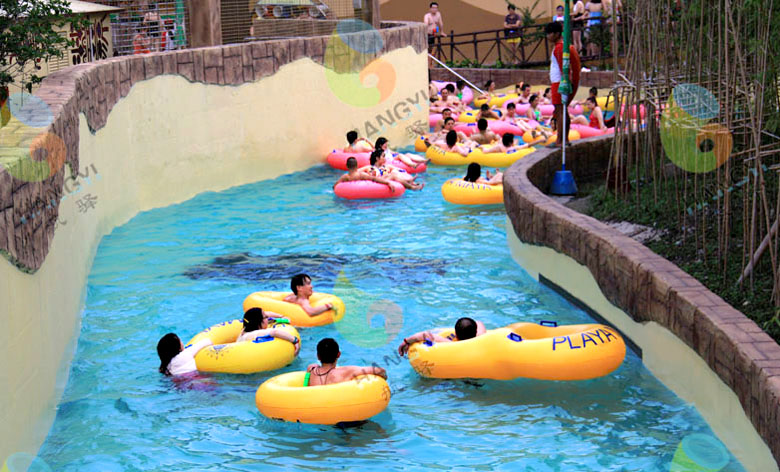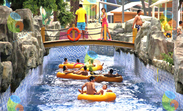 漂流探险河,采用高压水泵,营造水流湍急的激流状态,沿河造景绚丽多姿,奇岩怪石,黑洞漩涡、激流险滩,顺流直下进入“神秘的时光隧道”。以一个舒适的姿态,悠闲地躺在浮圈上沿河漂流,静静地欣赏园里的风景或跟家人朋友畅谈,在远离都市喧嚣的清凉水流中寻找到一片静谧之地。