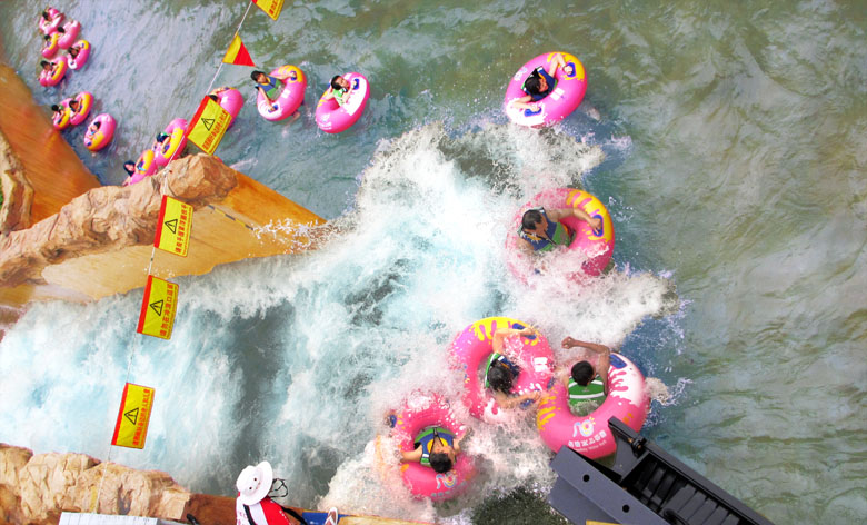 千钧一发之时,浪潮澎湃涌动,如同让人防不胜防的山洪,冲向游客,紧握浮圈,屏住呼吸,闭上双眼,才是最佳应对决策。感受刺激兴奋的同时,体会生存的意义、重创,因感受而精彩。