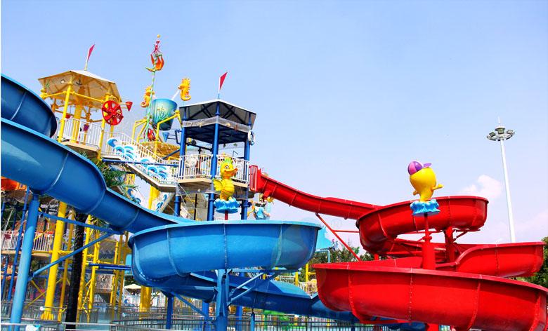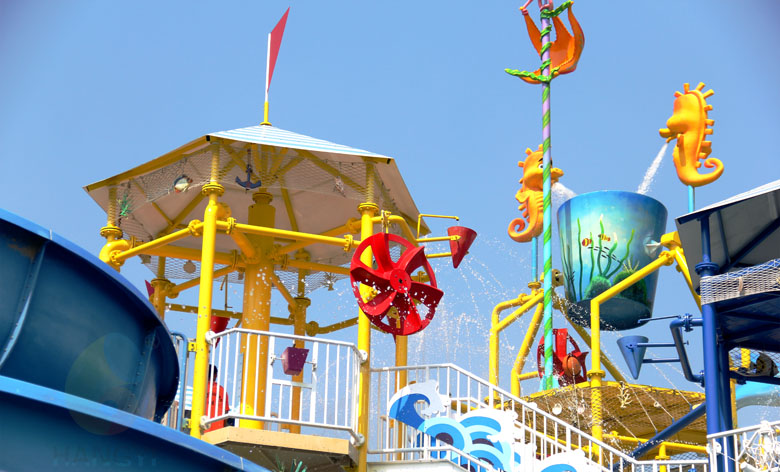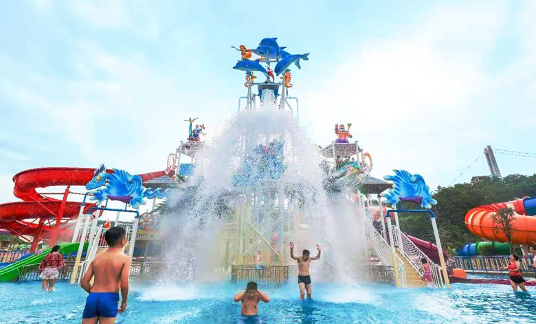 广东盈香生态园互动水寨,以海洋风格为主题,与戏水玩具、水翻斗、水滑梯等相结合,打造出海天一色的浪漫景色,黄昏下的水寨,在晚霞的照耀下,熠熠生辉,清爽自然,同时也成为景区中一道亮丽的风景线!